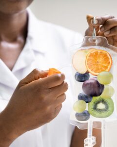 Your infusion begins in one of our plush, reclining chairs, where you’re invited to fully unwind. A heat pack is gently placed on you to soothe your body as nutrients flow into your system. A curated selection of organic teas, infused waters, or an electrolyte beverage is offered to complement your hydration and relaxation.